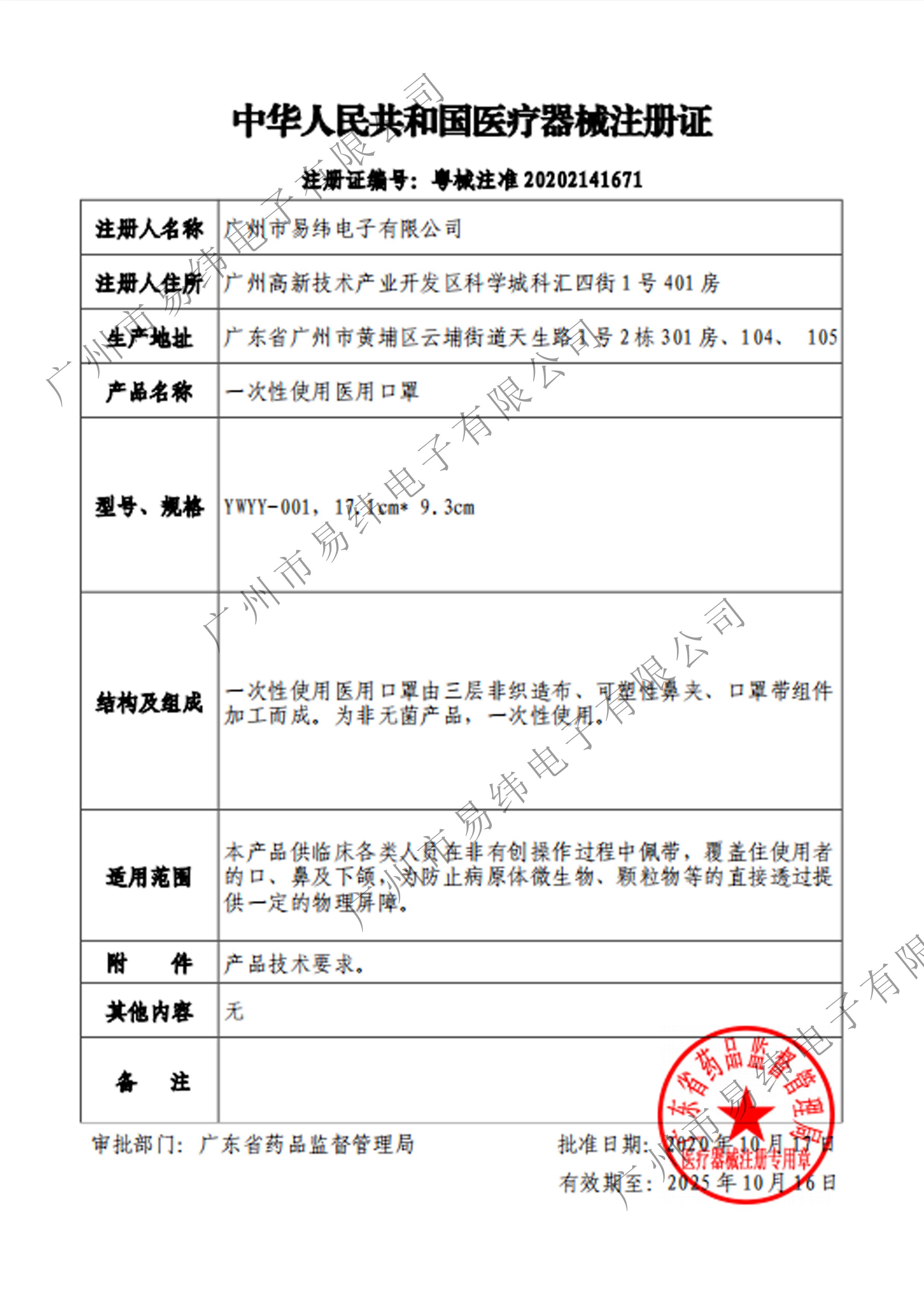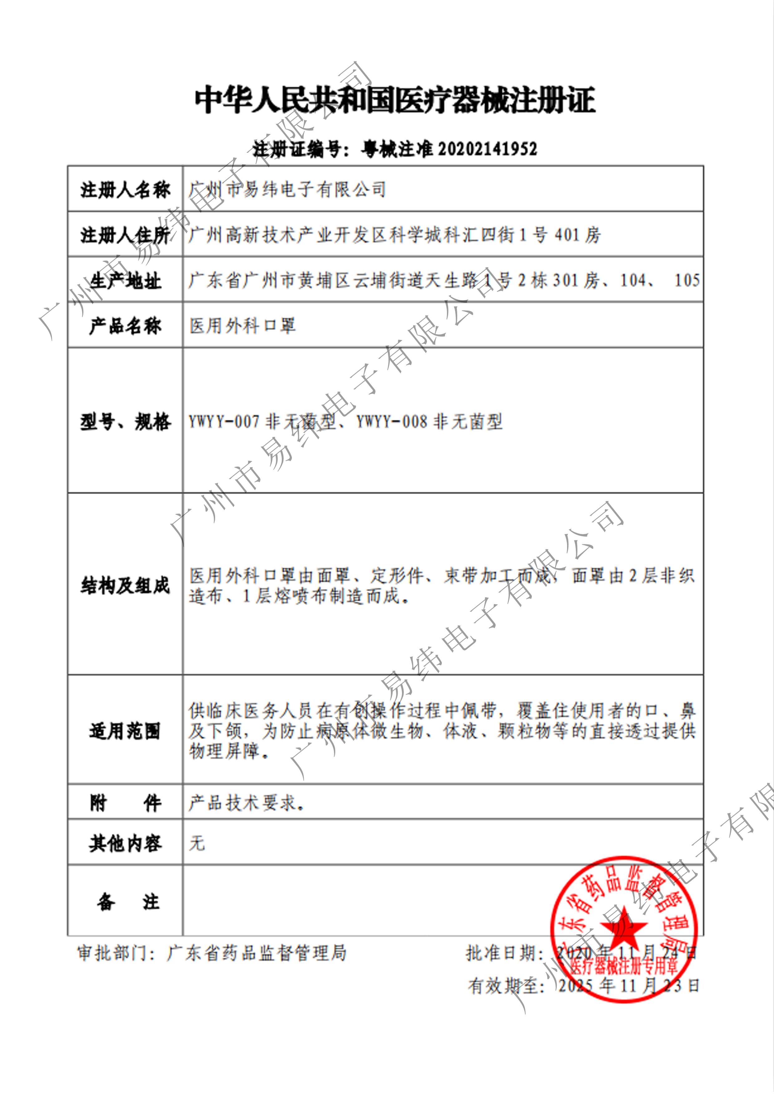 当国内的口罩已经生产过剩了,广州易纬决定只要承诺做了的事情就一定要坚持做好,做下来,广州易纬坚持按照法律法规依法取得了一次性医用、医用外科,医疗器械生产许可证,医用口罩及KN95均进入了商务部白名单。