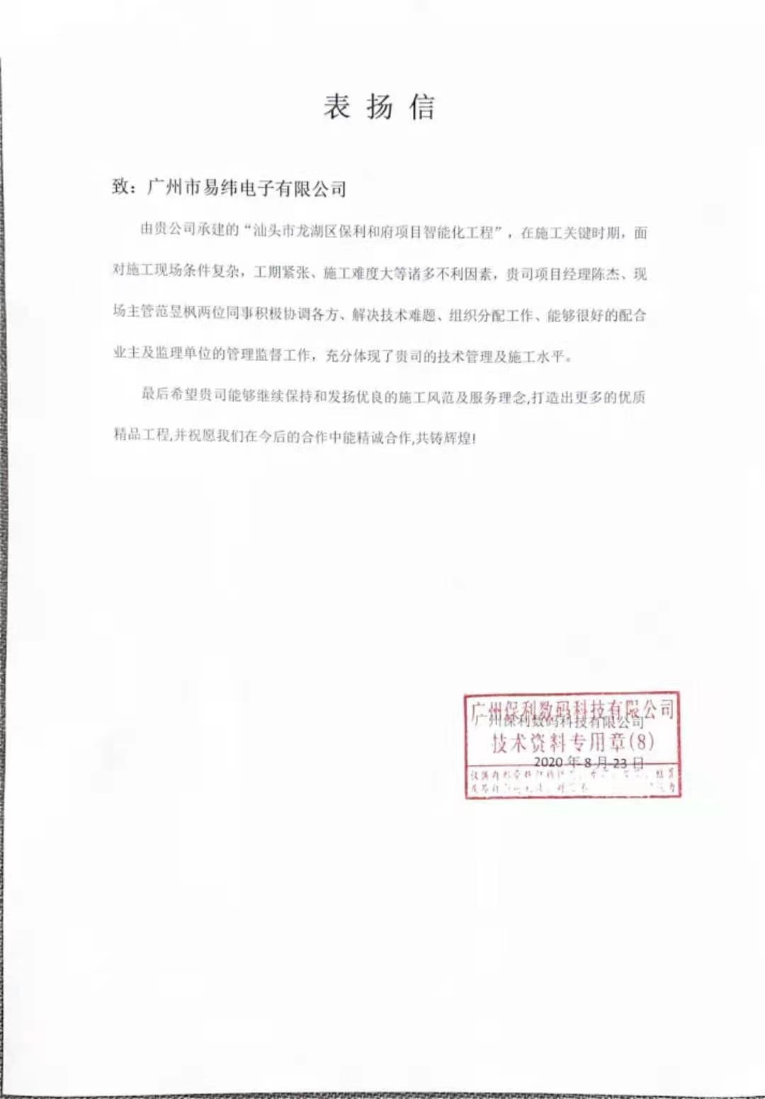在很多项目无法开工或投标时,广州易纬员工配合公司进行内部培训,加强电话或网络端的客户沟通和服务项目开工后,广州易纬员工第一时间投入施工现场,竭尽全力地为客户赶进度、抓质量,做好售后维护,这是爱;业主和客户对广州易纬员工的全情付出和高品质服务表达高度认可,纷纷给广州易纬发来表扬信或感谢信,这是爱;