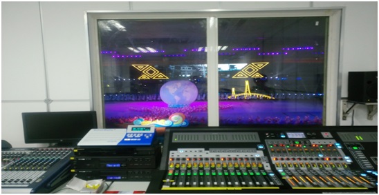 本次开幕式主场馆为体育场,根据现场的建筑情况以及建声条件,并结合先进的声场模拟软件EASE,我们选配了LAX 曲线阵列产品,以保证现场的声场均匀度和足够的声压级。扩声系统传输链路采用冗余备份机制,数字信号系统与模拟信号系统热备份,保证任何一系统崩溃都能自动快速切换至另外一系统,从而进一步为省运会的顺利进行提供了坚实基础。