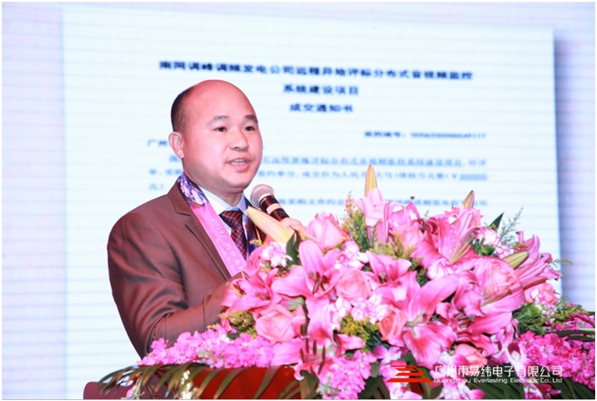 接着现场大屏幕播放了易纬公司精心制作的精美短片,随后董事长邓伟东先生上台致辞。短片和董事长的致辞里,充分而声情并茂地介绍了易纬公司的主营业务、企业理念、过去16年的发展历程、易纬多年来积累的管理、人才、技术、资质等核心竞争优势、取得的成就、企业文化及未来的发展展望等。