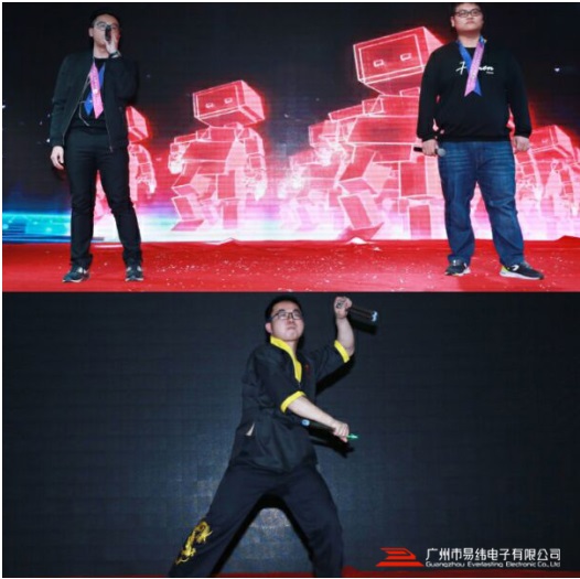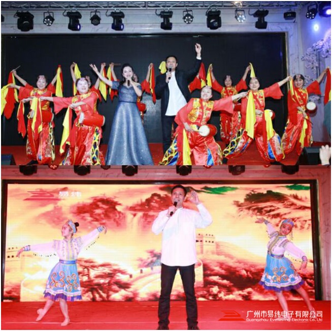 年会在一曲《红红的日子》中盛大开场!象征着易纬公司业务红红火火,蒸蒸日上。
