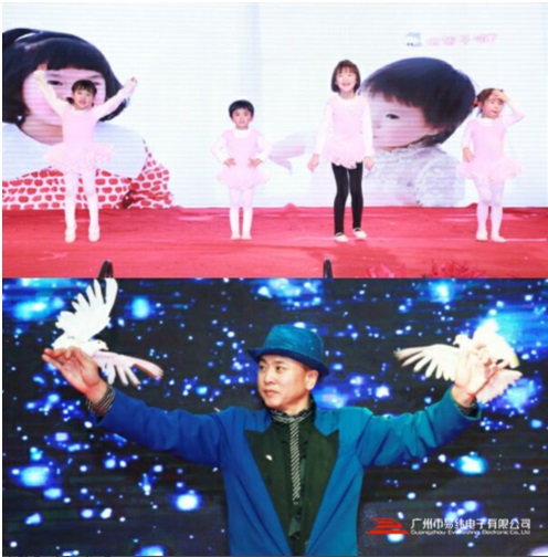 晚会节目精彩纷呈,高潮迭起。既有外请演员的专业演出,也有员工及家属的激情助兴。和往年不一样,首秀节目是由灯光秀+《红红的日子》组合,开场就博得喝彩,全场沸腾,给全场带来了喜庆的气氛;一首《赞歌》让我们感受到草原的辽阔、各民族兄弟欢聚在一起的喜悦;《光耀未来》,让人体验光给人带来的闪耀灵动的感觉,赢得了台下掌声阵阵;一首诗朗诵《爱.未来+》,展现了易纬人的爱,易纬人的憧憬;接下来就是单簧管、爵士鼓合奏《哆来咪》、舞蹈嘚啵嘚啵让我们感受到现在的小朋友的多才多艺;一曲《锦绣前程》,表达爱像一盏灯,指引我们阳光的路,照亮我们那锦绣前程,愿广州易纬发展年胜一年,前程似锦;设计开发中心的《浮夸》让我们体验时尚青年的独特个性;总经办《武术》让我们感觉到双节棍的刚中带柔;一场神奇的《魔术表演》把观众带到了一个魔幻的世界,真是太不可思议了;最后是压轴“大戏”《欢聚一堂》(腰鼓舞+打击乐),十多位六十多岁的老奶奶舞蹈团精神抖擞,用民族腰鼓舞给大家带来了一场音乐和视觉的盛宴。现场嘉宾们一边品尝美味佳肴,一边欣赏舞台上的精彩表演,其乐融融、兴致盎然!