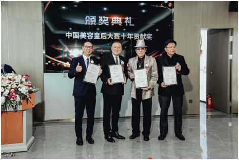 同时,为感谢各方的支持与贡献,中国美容皇后大赛进行了表彰颁奖仪式。由大赛组委会执行主席伍小平先生特别向中国国际新闻网社长陈政峰、中国香港商会荣誉会长林卫智、美国首位华裔市长黄锦波、广东省模特行业协会会长陆华浩颁发了“十年贡献奖”证书,以表彰他们这些年对中国美容皇后大赛作出的杰出贡献。