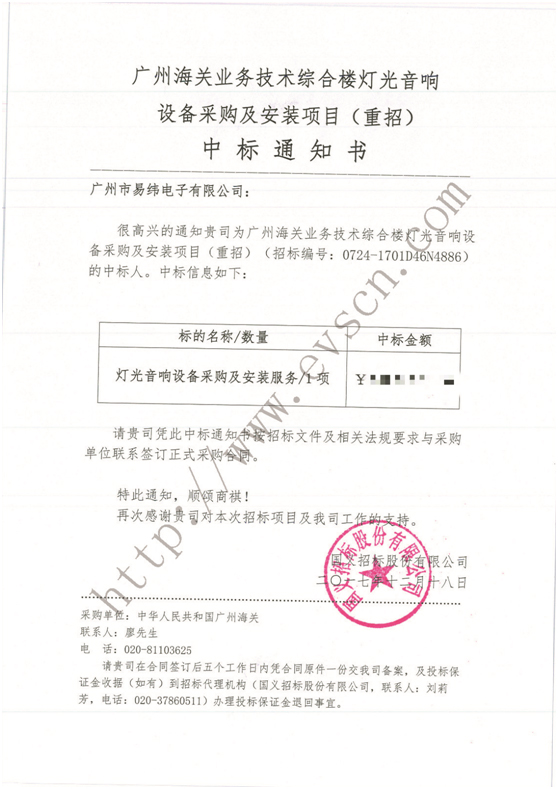 期待回眸一见更璀璨的您---易纬中标广州海关业务技术综合楼灯光音响设备采购及安装项目
