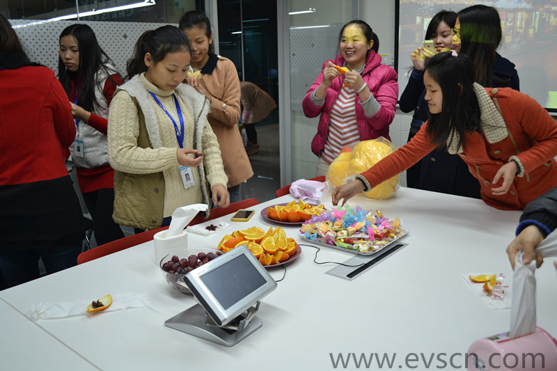 一年一度的圣诞节如期到来,繁华闹市中圣诞的氛围早已浓郁。当然,对于重视节日氛围和员工活动的企业来说,企业内部的布置当然必不可少。五颜六色、挂满铃铛和礼物的圣诞树早已树立在公司门口,LOGO背景墙细心地挂了一串可爱的铃铛,高脚台桌和前台桌角也温馨地摆放着精致的小圣诞树···处处体现着易纬人事行政部同事的用心。往年为了迎合大众口味,易纬是为每位员工发放巧克力作为节日礼物,今年圣诞,为了集中大家庭成员共同庆祝圣诞,活跃大家的生活,易纬此次采取抽奖的方式来庆祝2013圣诞节,以奖品的形式将公司的问候和温暖给予各位易纬同仁。
