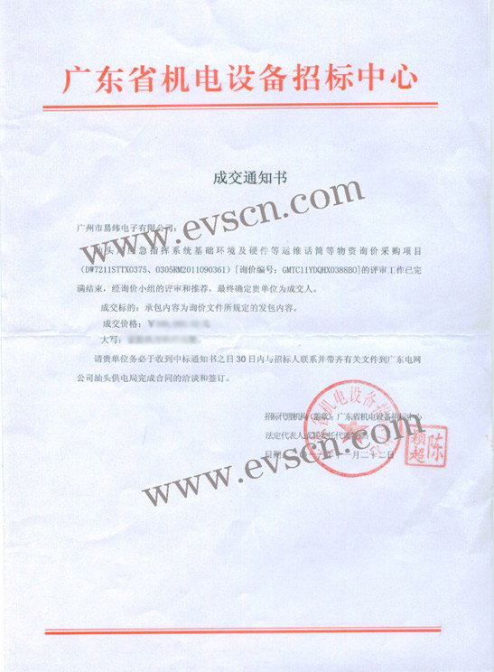祝贺易纬汕头局应急指挥系统基础环境及硬件等采购项目中标